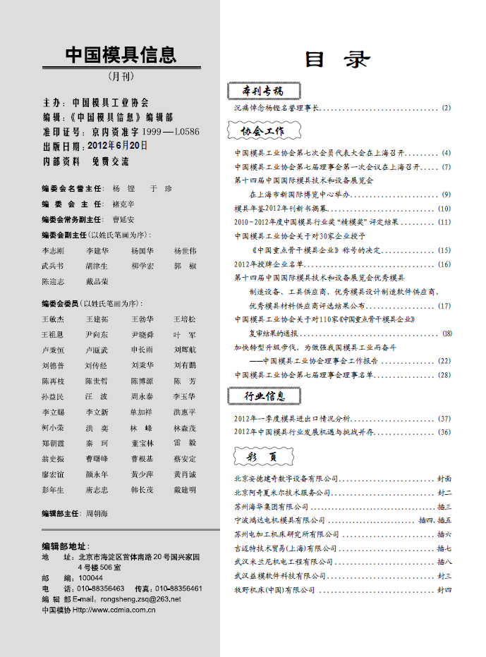 中國模具信息2012年第六期目錄