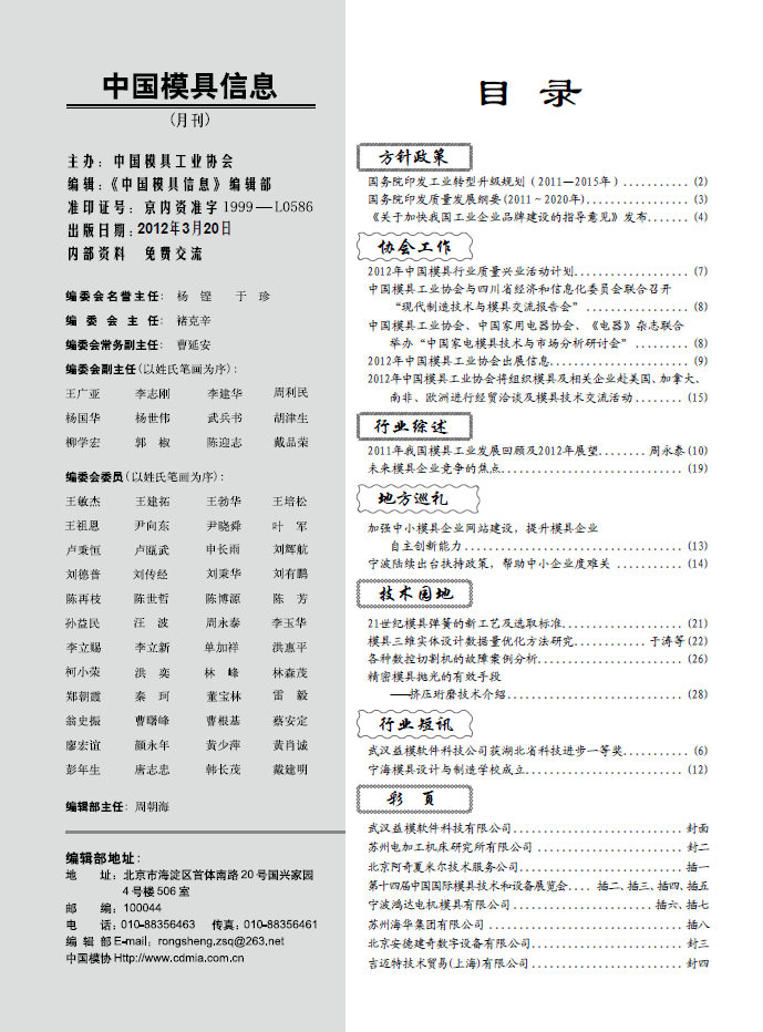 中國模具信息2012年第三期目錄