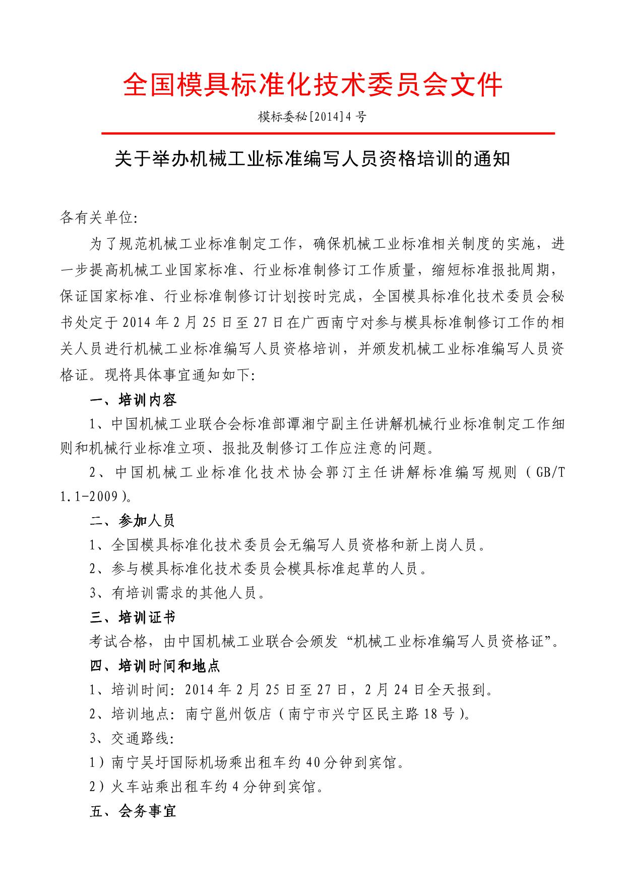 關(guān)于舉辦機械工業(yè)標(biāo)準(zhǔn)編寫人員資格培訓(xùn)的通知