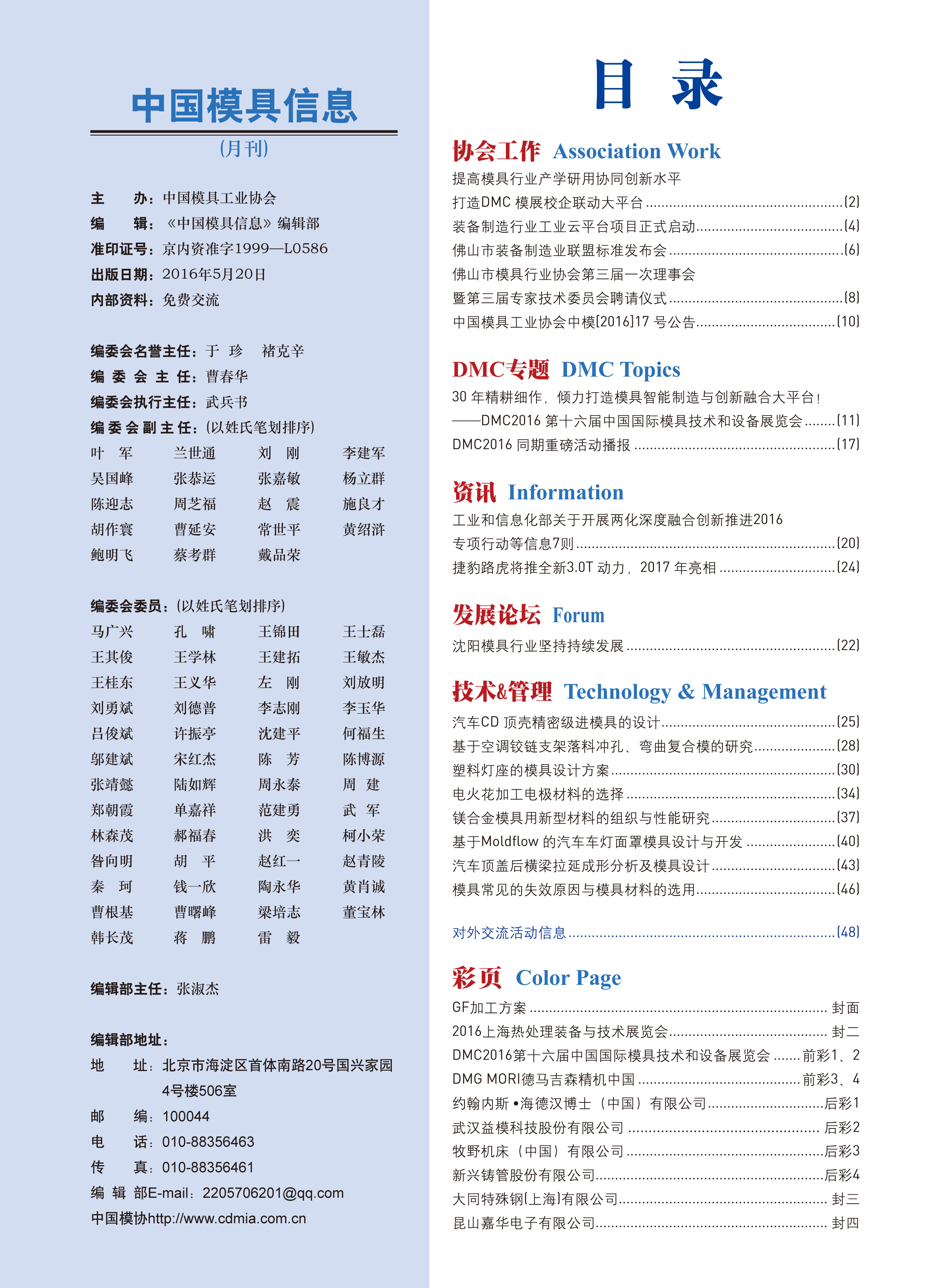 中國模具信息2016年第五期目錄
