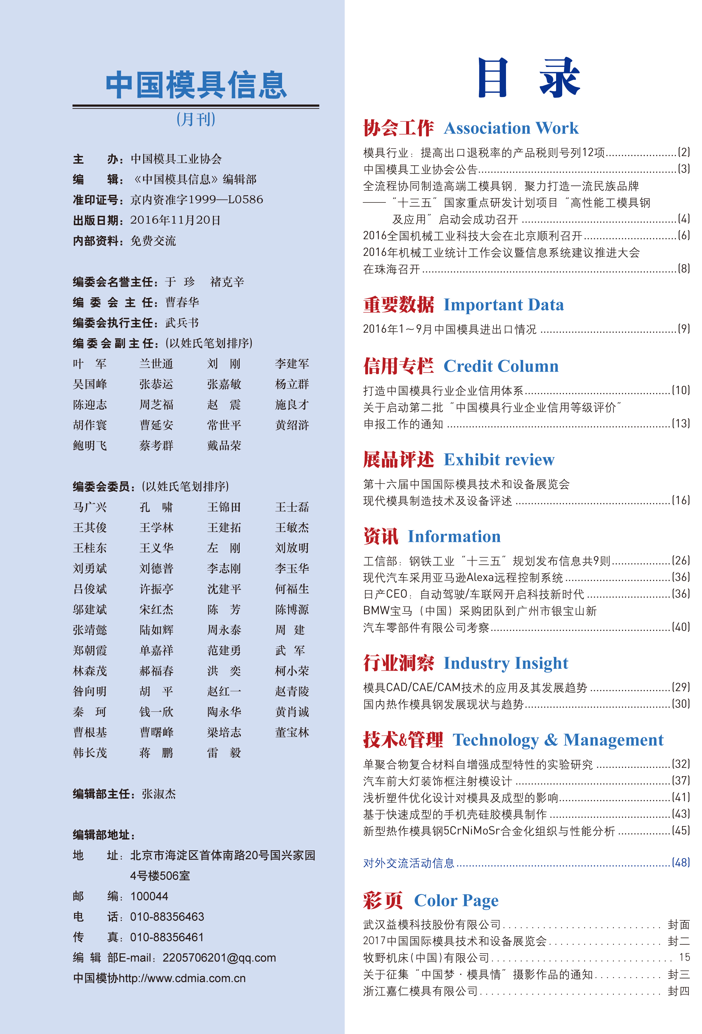 中國模具信息2016年第十一期目錄
