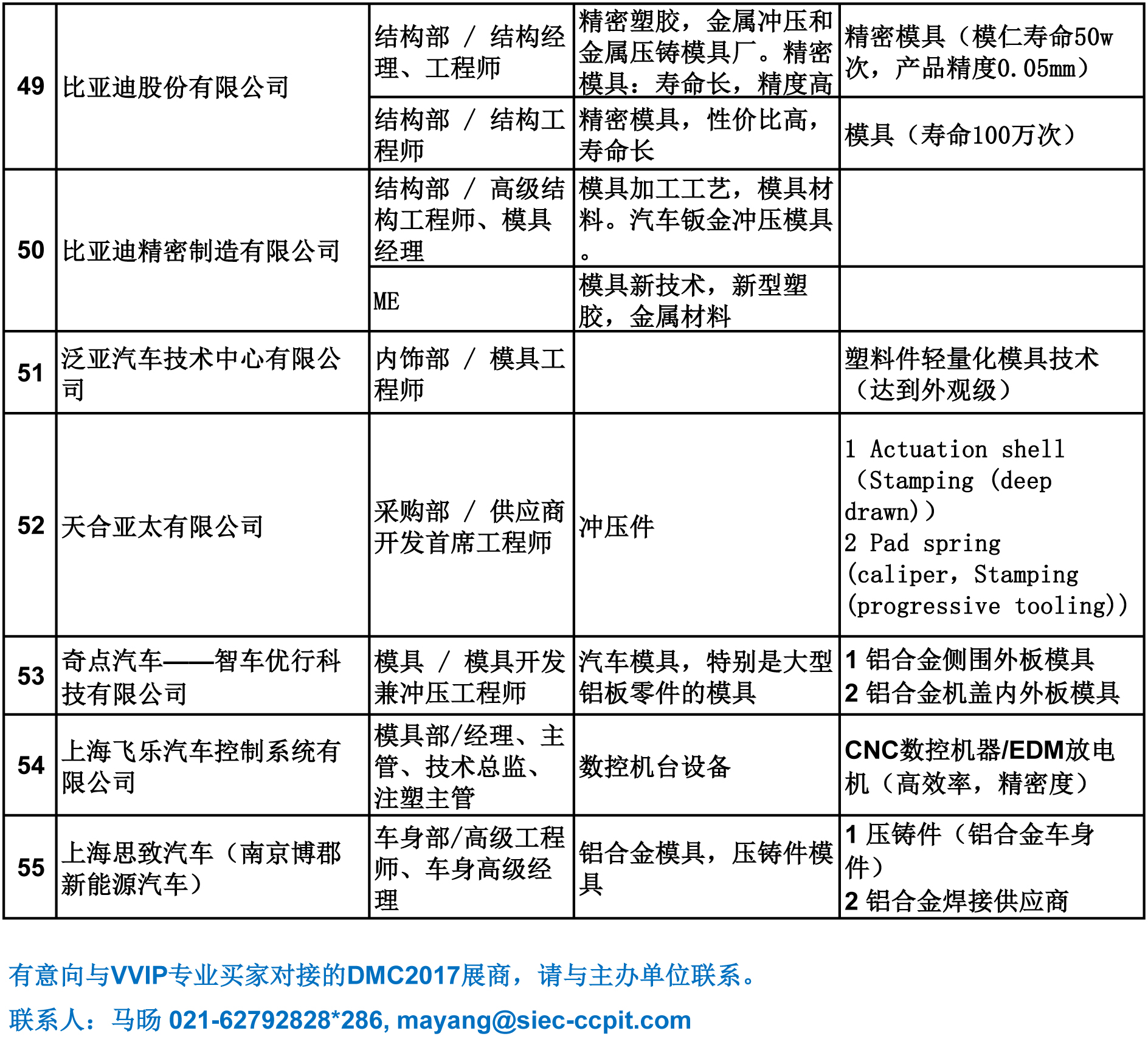 DMC2017 VVIP專業采購意向表(整車、汽配)