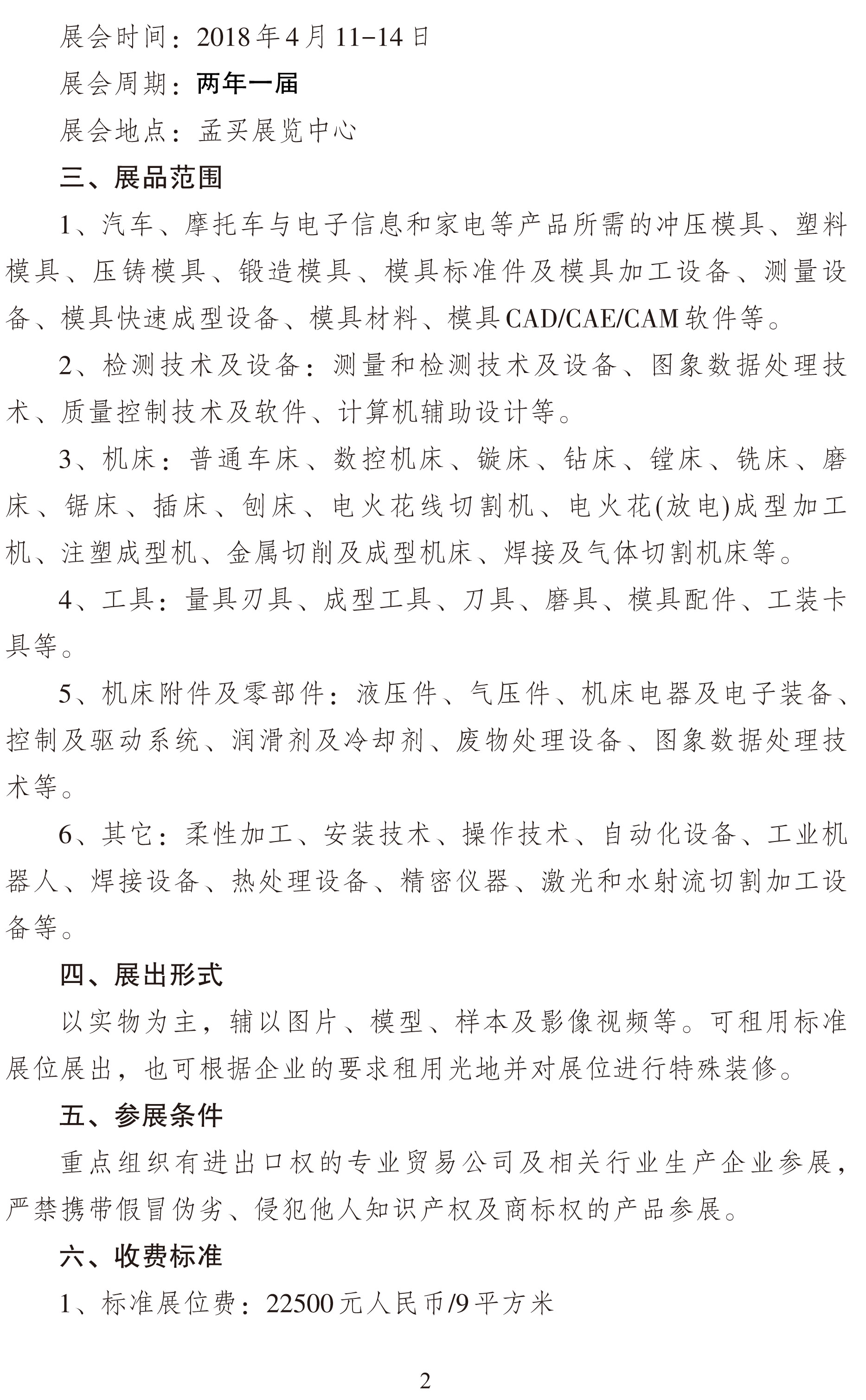 關于邀請參加2018印度孟買國際模具展覽會的通知