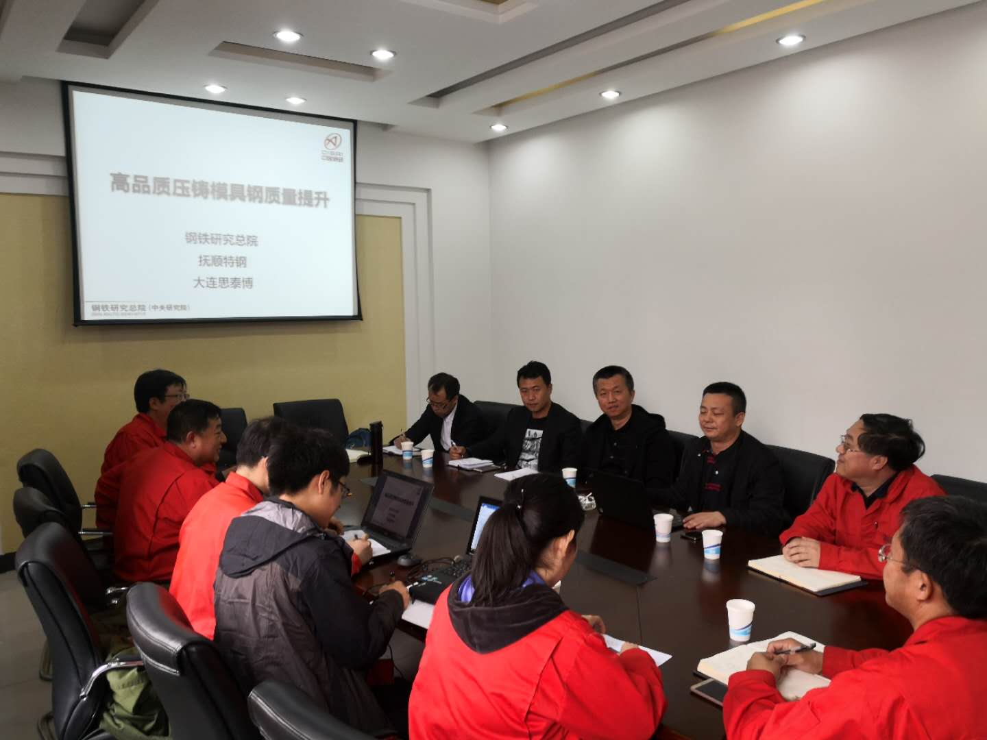 2018年4月23日,由撫順特殊鋼股份有限公司主導的“高熱強性熱鍛模具鋼的開發(fā)”項目在撫順特鋼啟動。該項目由鋼鐵研究總院、撫順特殊鋼股份有限公司(以下簡稱“撫順特鋼”)、大連思泰博模具技術有限公司(以下簡稱“大連思泰博”)聯(lián)合攻關。鋼鐵研究總院馬黨參、周健,撫順特鋼唐國梁、王琳、康愛軍、劉寶石,大連思泰博金宇峰、徐宏飛、梅建蒙出席了本次會議。本項目的目標是突破特大型壓鑄模塊(FS438、GYDCK-S)的高潔凈、無偏析、組織均勻化的高性能長壽命穩(wěn)定化生產(chǎn)關鍵技術。同時,借助大連思泰博已建成的高端模具真空熱處理、表面處理裝備,突破高端壓鑄模具微變形、無氧化、長壽命的先進熱處理技術。通過三方的強強聯(lián)合,優(yōu)勢互補,形成高端壓鑄模具新材料研發(fā)、生產(chǎn)、模具設計制造、大型復雜模具的熱處理集成創(chuàng)新鏈,更好的為客戶服務,促進中國壓鑄行業(yè)的發(fā)展。