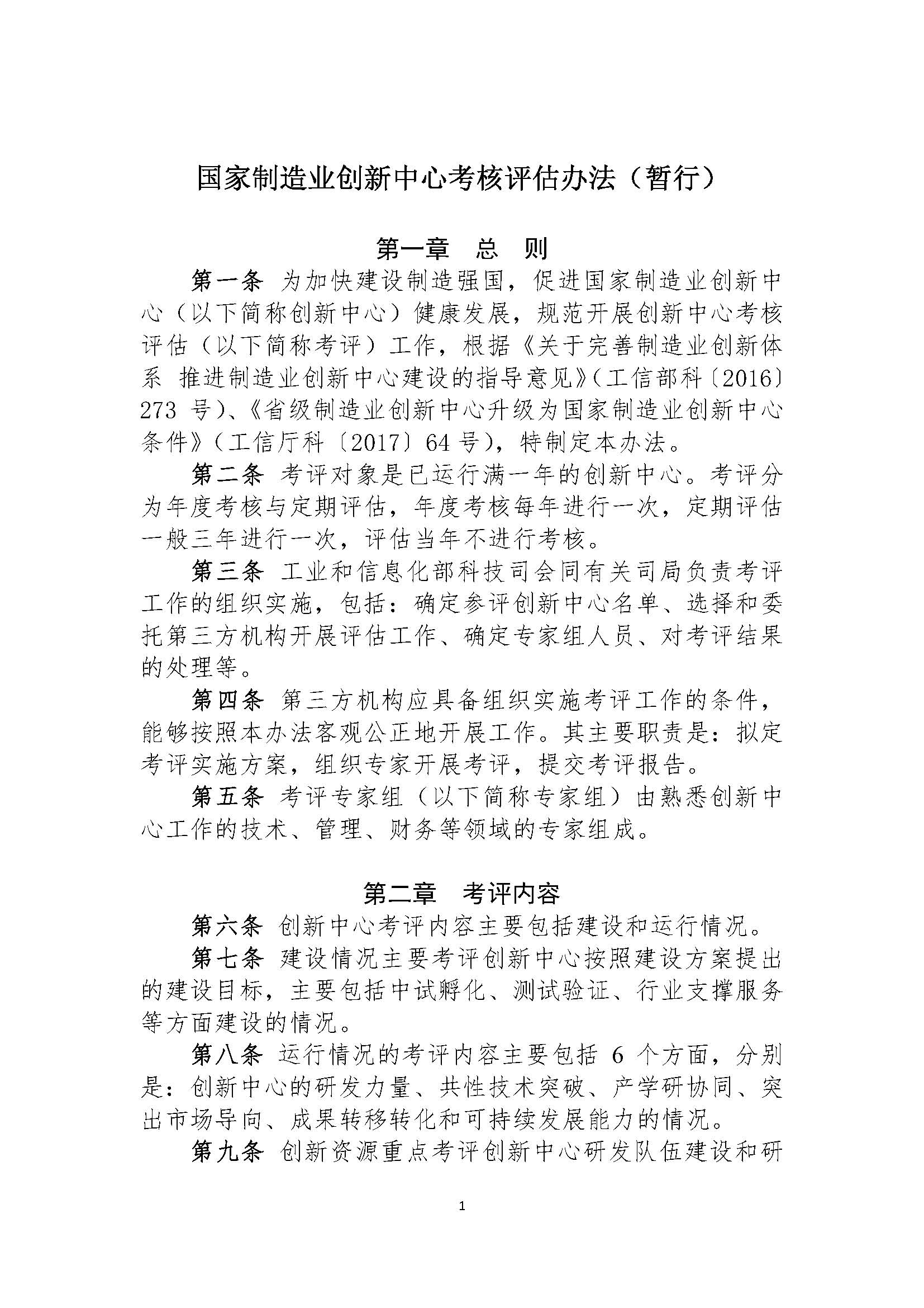 工業和信息化部辦公廳關于印發《國家制造業創新中心考核評估辦法(暫行)》的通知
