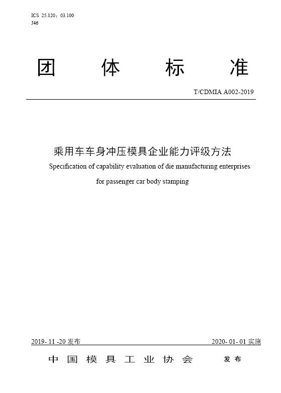 中國模協(xié)標準A002-乘用車車身沖壓模具企業(yè)能力評級方法-2019