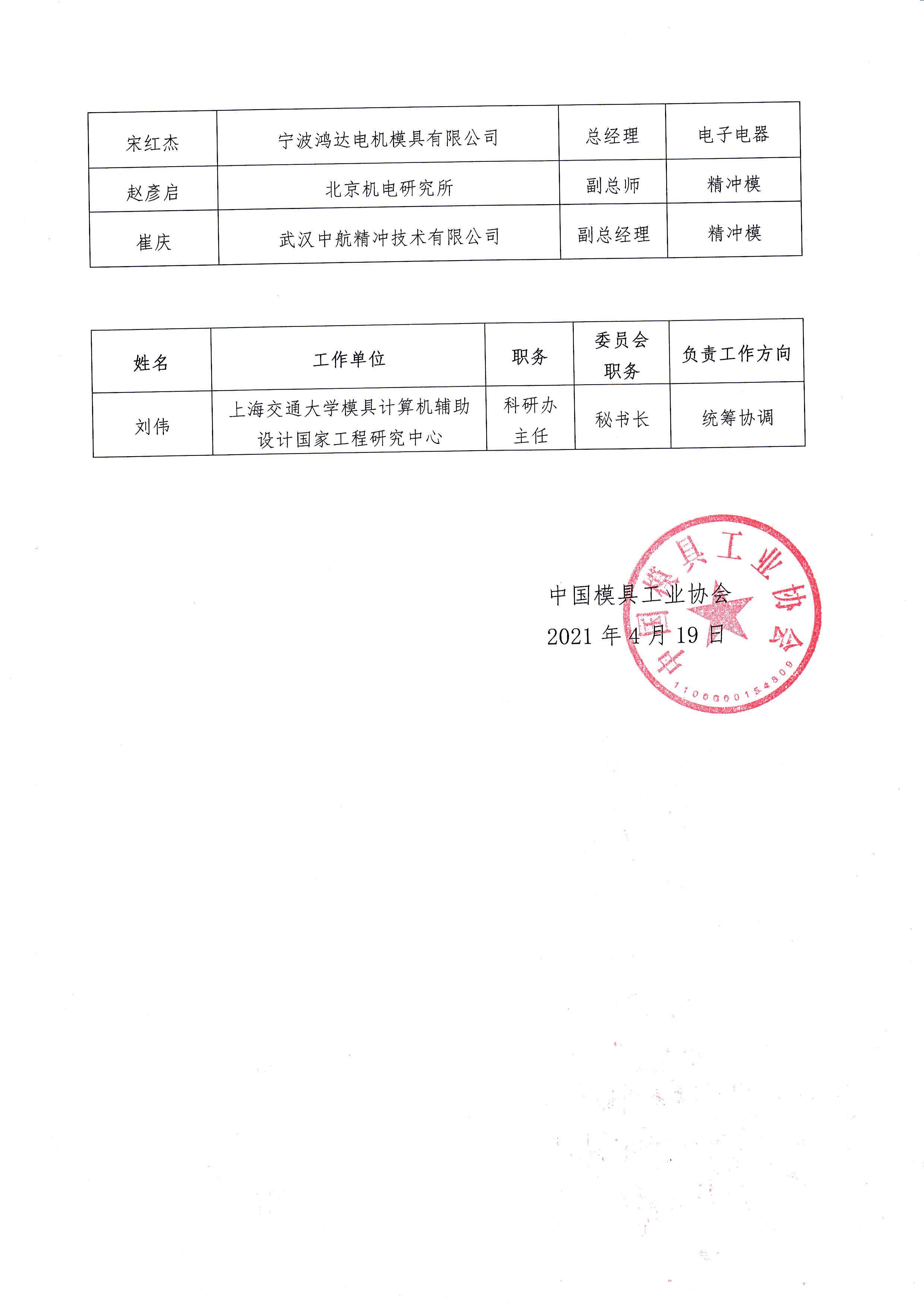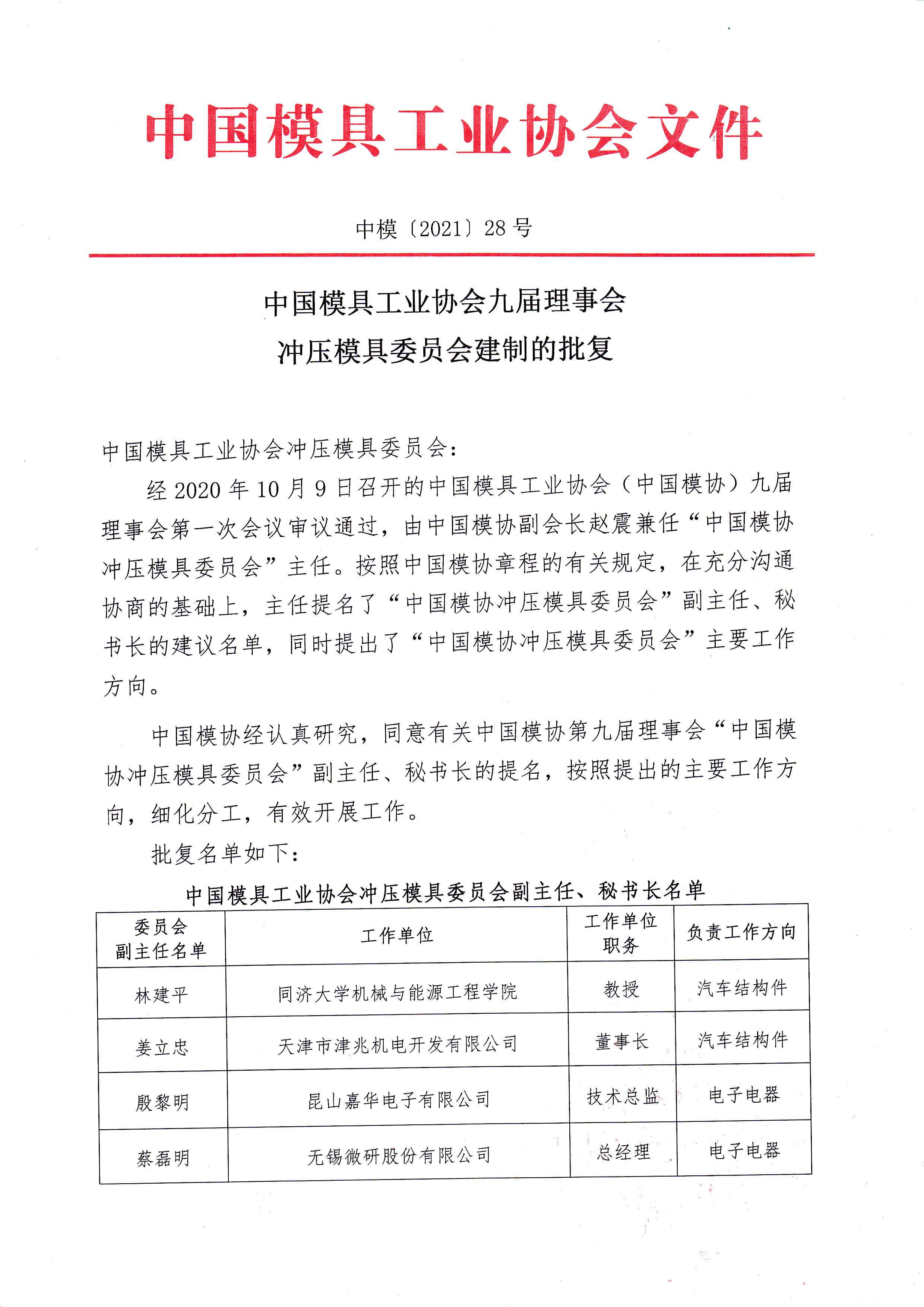 第九屆理事會沖壓模具委員會建制的批復