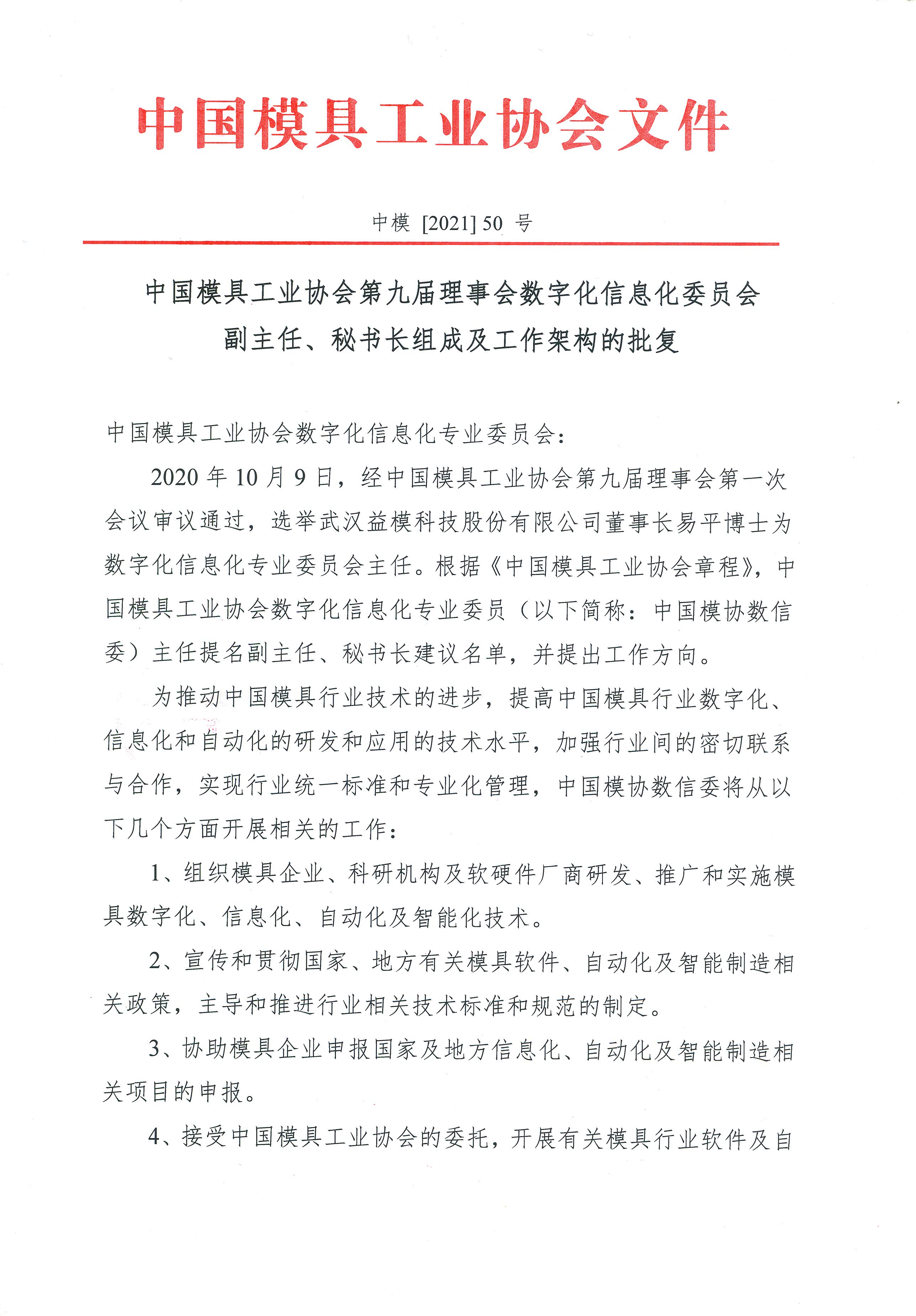 中國模協(xié)第九屆理事會數(shù)字化信息化委員會副主任、秘書長組成及工作架構(gòu)的批復(fù)