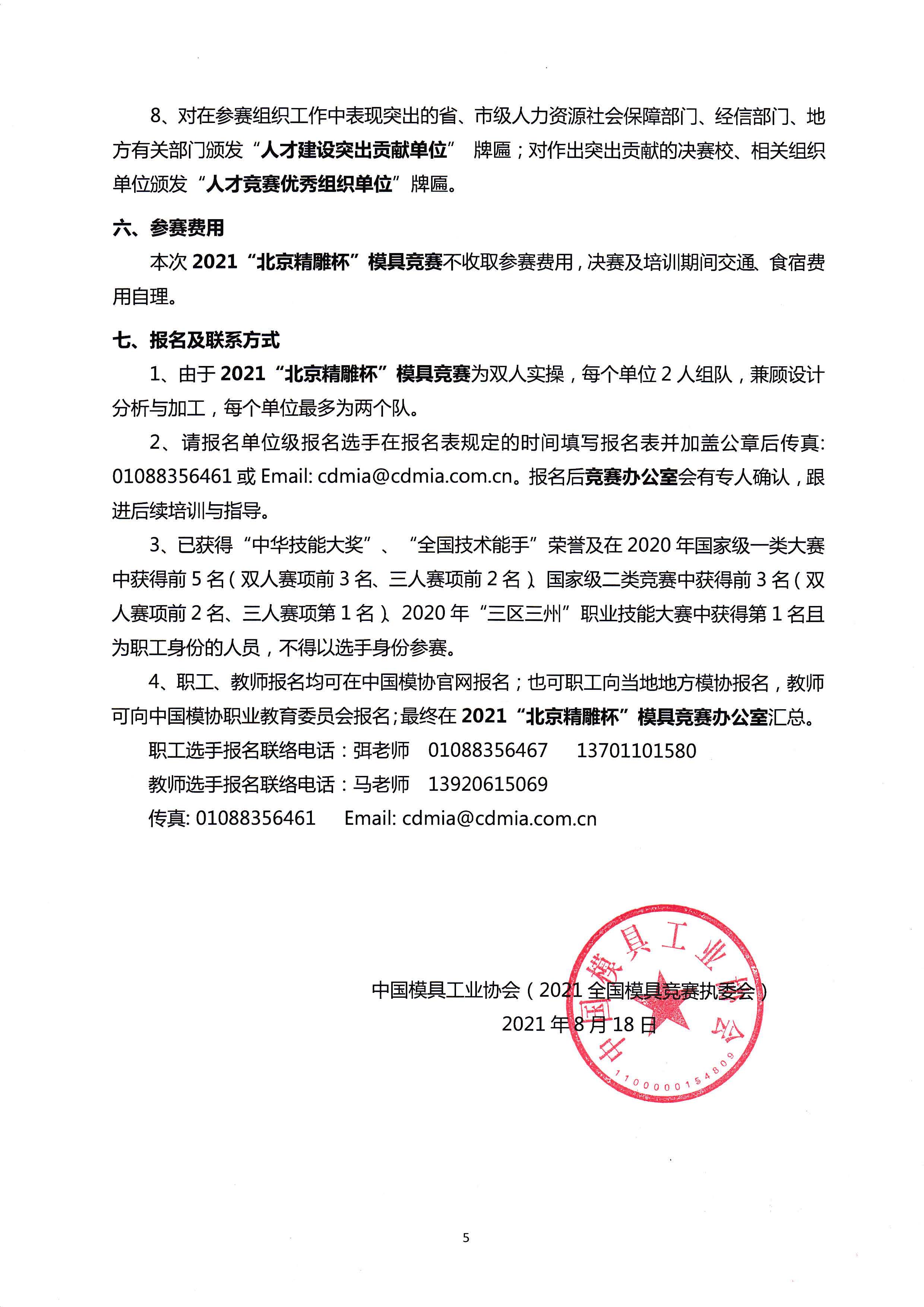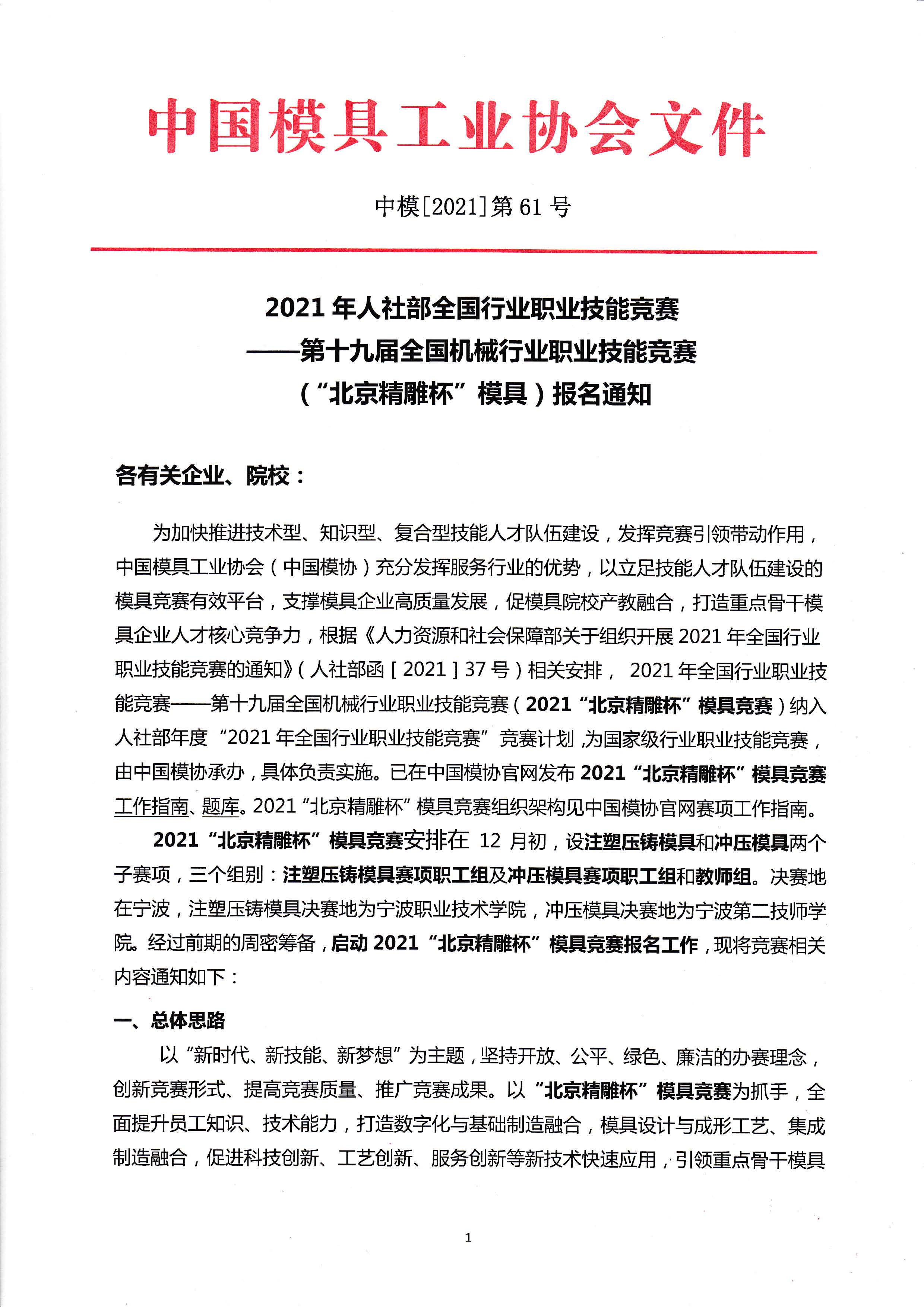 2021年人社部全國(guó)行業(yè)職業(yè)技能競(jìng)賽——第十九屆全國(guó)機(jī)械行業(yè)職業(yè)技能競(jìng)賽(“北京精雕杯”模具)報(bào)名通知