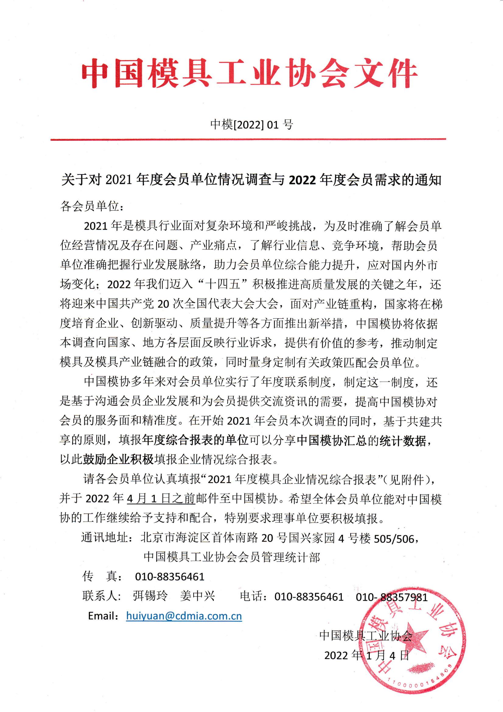關于對2021年度會員單位情況調查與2022年度會員需求的通知