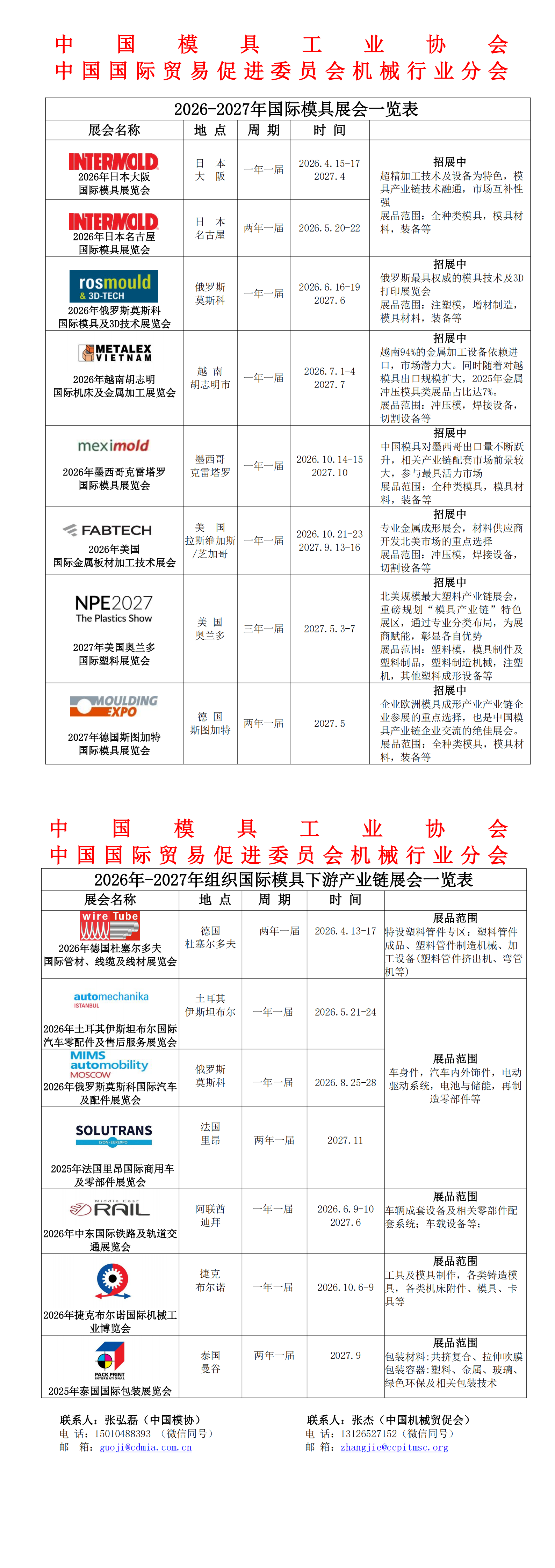 2026-2027年國際模具展會一覽表
